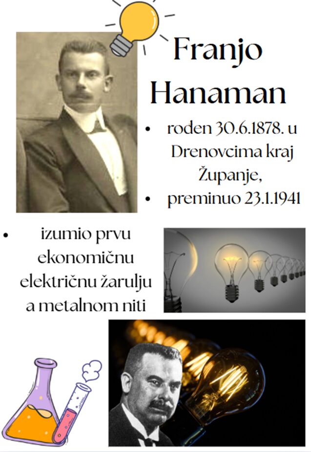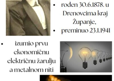 U sklopu nastave informatike, početkom studenog 2025., učenici 8.c, 6.a i 2.d razreda sudjelovali su u projektu Naši izumitelji. Cilj projekta bio je istražiti i pronaći točne informacije na zadanu temu, te stvaranje edukativnih plakata o izumiteljima iz Republike Hrvatske. Učenici 2. razreda su svojim kreativnim radovima predočili izume spomenutih izumitelja. Dio radova predstavili smo u holu škole kako bi se što više učenika moglo informirati i saznati nešto više o hrvatskim izumiteljima i samim izumima. Nositelj projekta bile su učiteljice Jasmina Purgar i Karmen Jurčević.